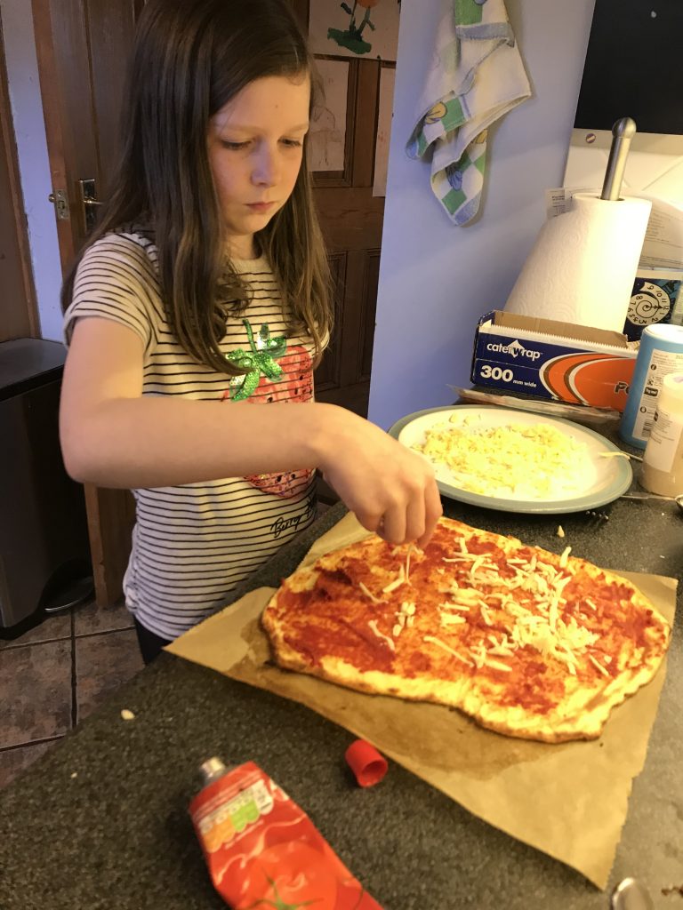 Yesterday we made our own homemade keto pizza as part of homeschool! They are made with lots of cheese and coconut flour.